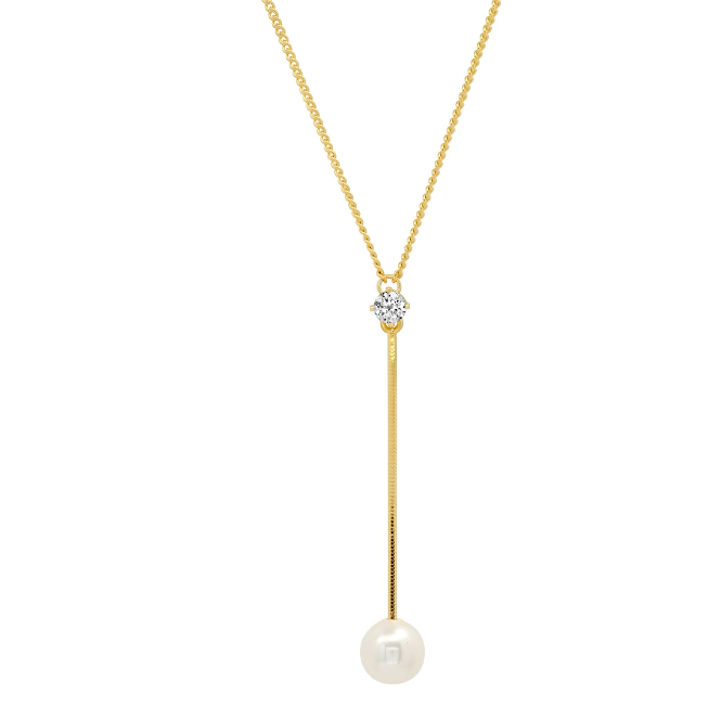 Pearl And CZ Chain Y Necklace